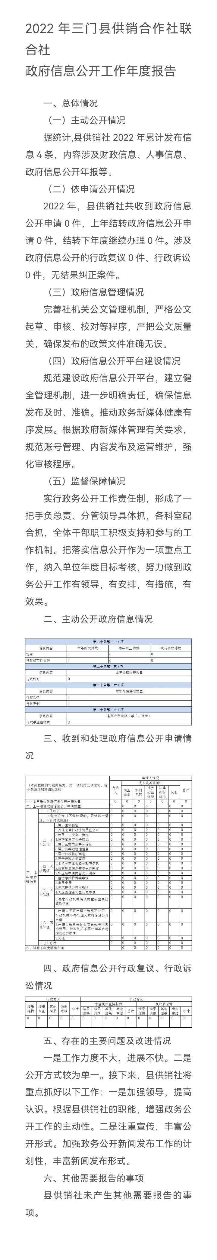 2022年三門縣供銷合作社聯合社政府信息公開工作年度報告圖解
