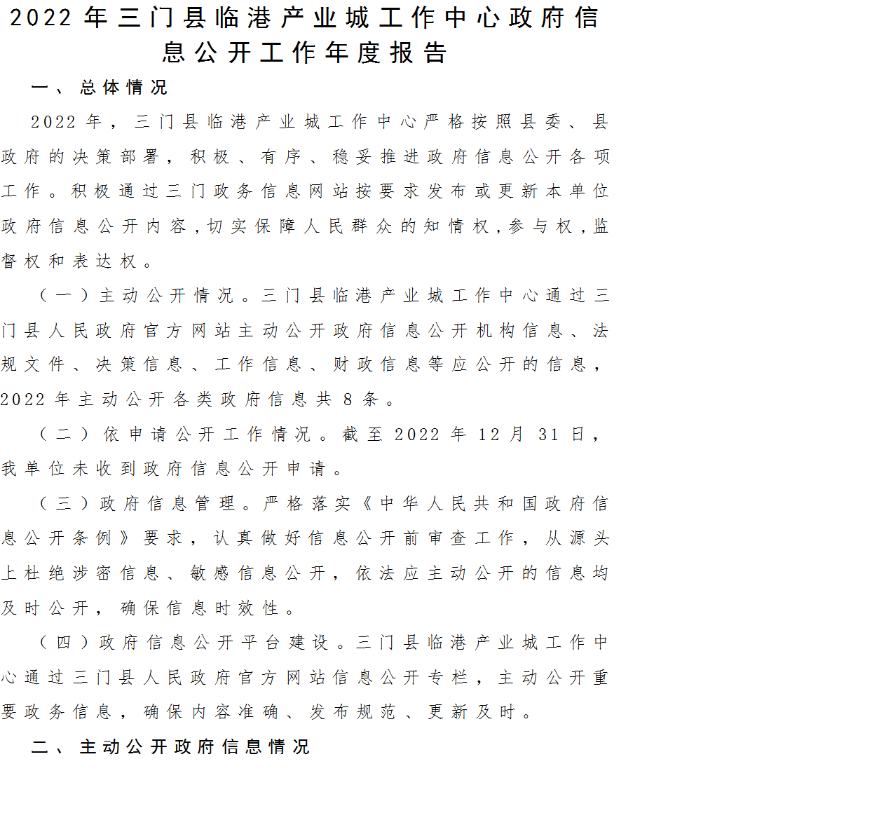 2022年三門縣臨港產業城工作中心政府信息公開工作年度報告(圖解)