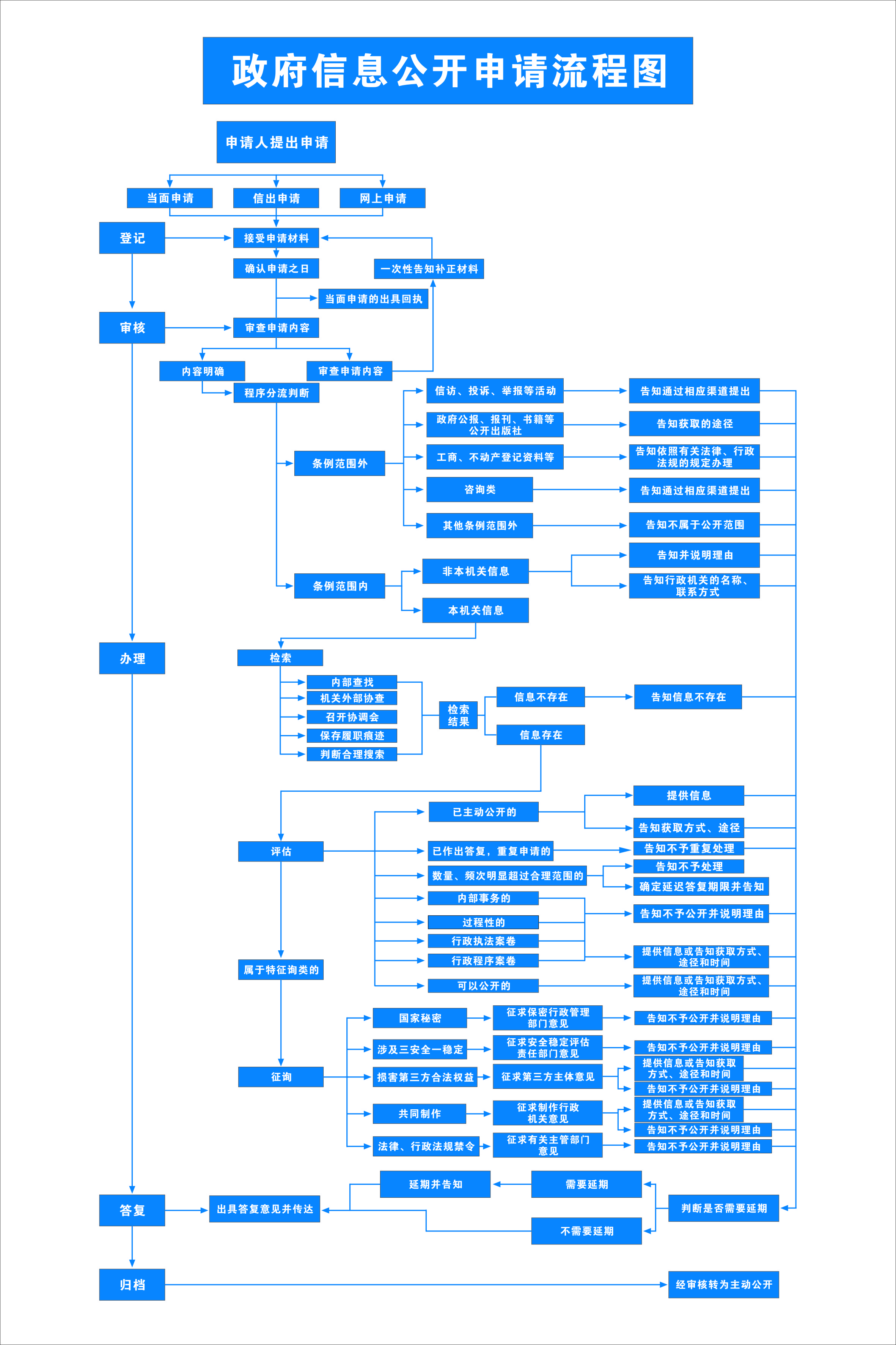 (1)本機關收到政府信息公開申請后,予以登記,除可以當場答復的外,自收到申請之日起20個工作日內予以答復;如需延長答復期限的,經本機關政府信息公開工作機構負責人同意并告知申請人,延長答復的期限最長不超過20個工作日。